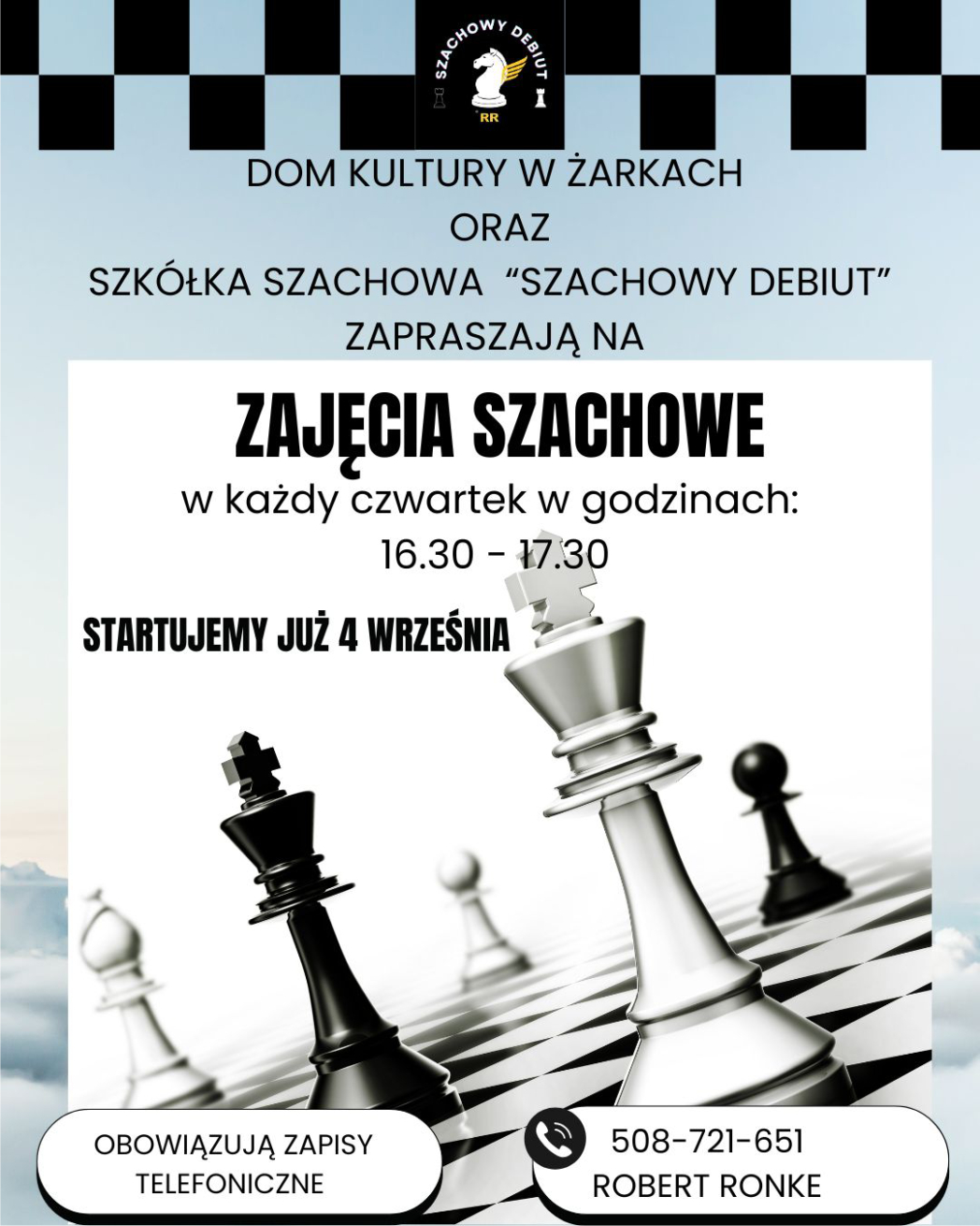 Instruktor: Robert Ronke (PZSzach) – tel. 508 721 651