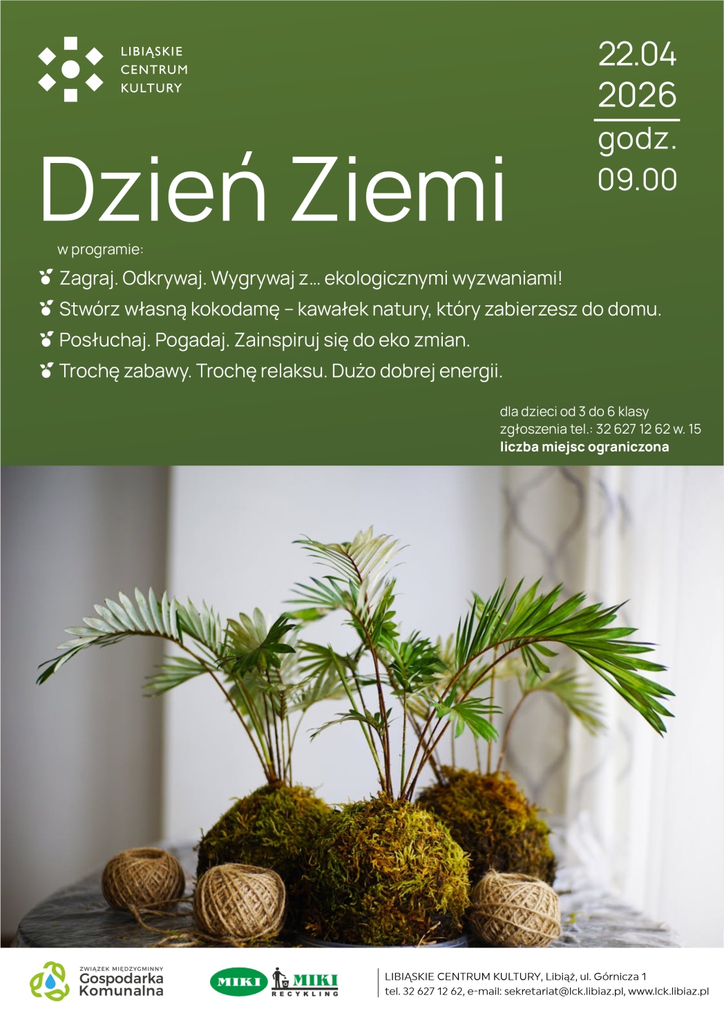 Zapraszamy na obchody Dnia Ziemi, które odbędą się 22 kwietnia 2026 r. o godzinie 9.00 w LCK. w programie: - Zagraj. Odkrywaj. Wygrywaj z… ekologicznymi wyzwaniami! - Stwórz własną kokodamę – kawałek natury, który zabierzesz do domu. - Posłuchaj. Pogadaj. Zainspiruj się do eko zmian. - Trochę zabawy. Trochę relaksu. Dużo dobrej energii. To wydarzenie […]